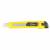 Immer scharf ist dieses große Kartonmesser. Der Vorteil sollte nach langem Gebrauch die Klinge stumpfer werden, dann ziehen Sie einfach die Endkappe ab, schieben Sie das Messer nur soweit heraus, dass nur der stumpfe Klingenteil nach außen zeigt, stellen Sie dann die Arretierung fest und schieben Sie die Endkappe einfach auf die stumpfe Klinge. Mit der Endkappe können Sie dann den stumpfen Teil der Klinge sicher abbrechen. So können Sie 7 mal fortfahren. Ihre Werbung bringen wir auf dem geschlossenen Teil des Kunststoffgehäuses an.